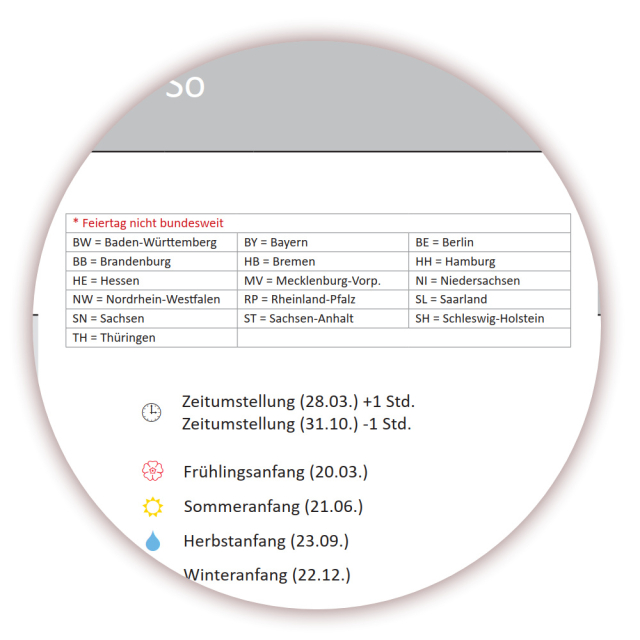 * extra große Tageskästchen mit viel Platz für Ihre Eintragungen