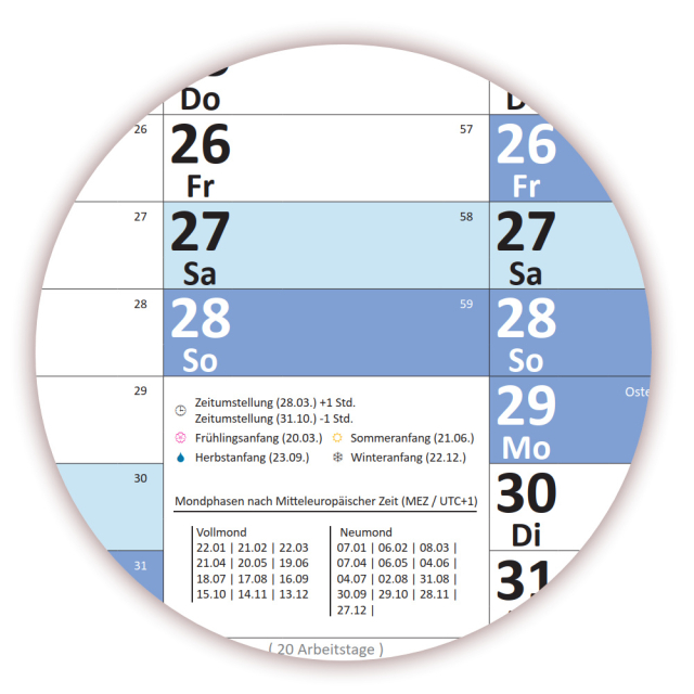 • Angabe der Kalenderwoche und des Jahrestages